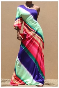 This multi-colored, diagonal striped, one-shoulder, maxi-dress is perfect ANY time of the year! Equipped with an invisible zipper in the back, the A-line silhouette compliments ALL body types. The color combination adds spice to every closet, and this piece can be styled with flats, sneakers, platforms, stilettos, and every shoe in between. Not only is this dress ultra chic, it's uber comfy and can be worn to formal events, cocktail receptions, meetings, brunch and even around the house.