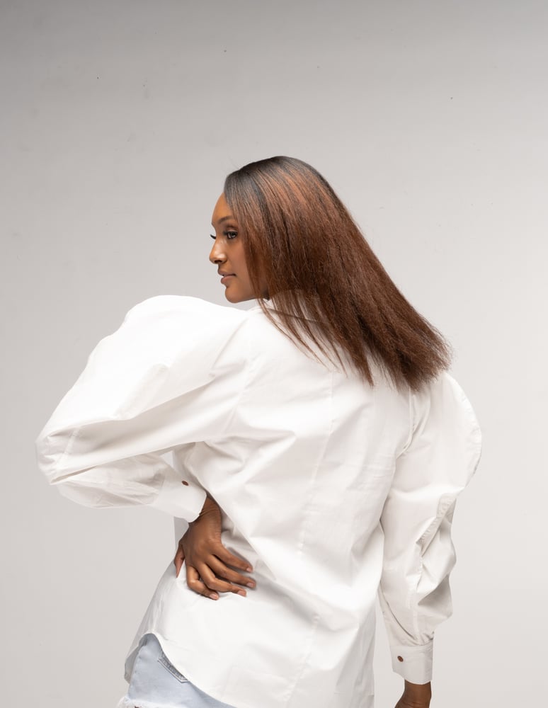 White Collared Shirt with Oversized Bishop Sleeve